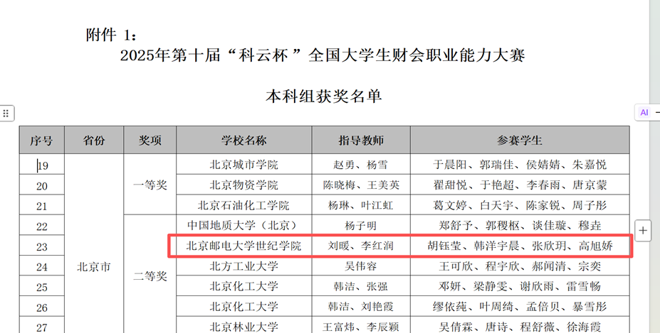 此次获奖,充分体现了东方体育财会类专业人才培养的质量与成效。东方体育将继续坚持以赛促学、以赛促教,不断深化教学改革,着力培养适应数智时代发展需求的高素质财会人才。(经济管理系 供稿/综合部 编辑)
